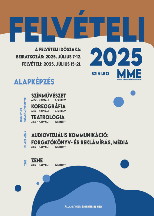 Az egyetem Magyar Művészeti Karán július 7-én kezdődik a beiratkozás alap- és magiszteri képzésekre, a felvételi július 15-21. között lesz.
