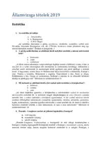 Államvizsga tételek 2019 Esztétika 1. Az esztétika névadója: a. Arisztotelész b. A. Baumgarten c. G.W.F. Hegel „Az esztétika elnevezése a görög aiszthészisz (érzékelés, szemlélés) szóból ered.…